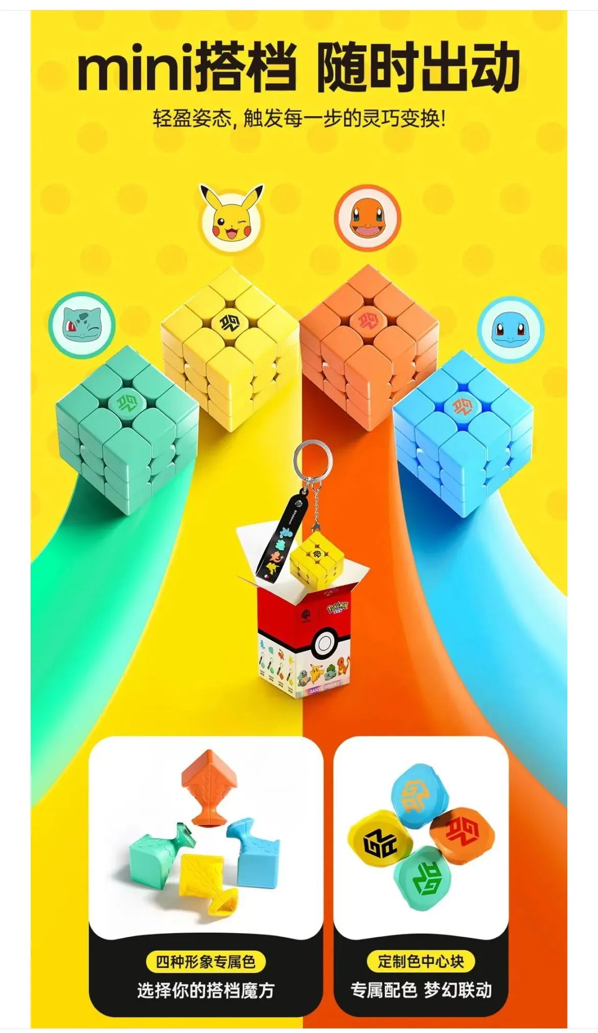 El GAN330 Pokémon Series – Squirtle Edition es un cubo único que combina la reconocida tecnología de GAN con el encanto del mundo Pokémon. Con un tamaño compacto de 30 mm, este mini 3×3 está diseñado para acompañarte a todas partes gracias a su práctico llavero metálico, que lo hace perfecto como accesorio de uso diario.